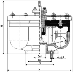 QB2双口排气阀原理作用: QB2双口排气阀当管内开始注水时,塞头停留在开启位置,进行大量排气,当空气排完时,阀内积水,QB2双口排气阀浮球被浮起,传动塞头至关闭位置,停止大量排气,当管内水正常输送时,如有小量空气聚集在阀内到相当程度,阀内水位下降,浮球随之下降,此时空气由小孔排出,当抽水机停止,管内水流空时或遇管内产生负压时,此时塞头迅速开启,吸入空气,确保管线完全。 QB2双口排气阀性能特点: ①能够排除管道中的气体,减少阻力节约能源; ②当管道负压时,本产品能快速自动吸入空气防止管道破裂; ③排气能力是普通双孔排气阀多倍; ④浮球托架为不锈钢,使用寿命长,安全可靠。 每小时排气量