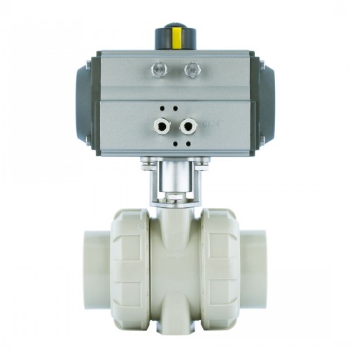 气动PP球阀阀体材质卫生无毒、耐腐蚀性强、重量轻、应用范围广,常用于耐腐蚀的场合。