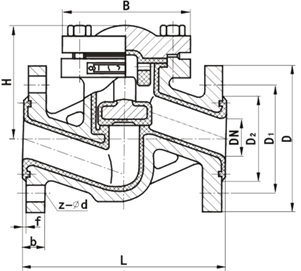 H41F升降式衬氟止回阀概述: H41F升降式衬氟止回阀是能自动阻止流体倒流的阀门,止回阀的阀瓣在流体压力作用下开启,流体从进口侧流向出口侧;当进口侧压力低于出口侧时,阀瓣在流体压差、本身重力等因素作用下自动关闭以防止流体倒流。专用于控制腐蚀性或强腐蚀性介质,阀体内腔表面覆有可供选择的各种氟塑料,具有强度高、耐腐蚀性能好的特点,适用于不同工作温度和流体管路,防止各类管路或设备上的介质逆流的单向阀。 止回阀的启闭件靠介质流动和力量自行开启或关闭,以防止介质倒流。止回阀一般分为升降式、旋启式、蝶式及卧式等四种类型,通式升降式止回阀应安装于水平管路上,立式升降式止回阀和底阀一般安装在垂直管路上,并且介质自下而上流动,旋启式止回阀安装位置不受限制,通常安装于水平管路,但也可以安装于垂直管路或倾料管路上。注意:止回阀只允许介质向一个方向流动,应特别注意介质流动方向,应使介质正常流动方向与阀体上指示的箭头方向相一致,否则就会截断介质的正常流动。 H41F升降式衬氟止回阀参数: 公称通径:DN15-DN300 公称压力:1.6Mpa-2.5Mpa 适用温度:-10℃~180℃ 适用介质:酸、碱、盐、王水、有机酸等强腐蚀性介质 阀体材质:铸铁、铸钢、碳钢 连接方式:法兰连接 设计标准:GB 12236 结构长度:GB 12221 检验试验:GB/T13927 法兰标准:JB/T79-94;GB 9113.1-26 H41F升降式衬氟止回阀特性:可用在强腐蚀性介质上起到止回作用,防止介质倒流。 H41F升降式衬氟止回阀尺寸: ![]() H41F升降式衬氟止回阀主要连接外形尺寸: